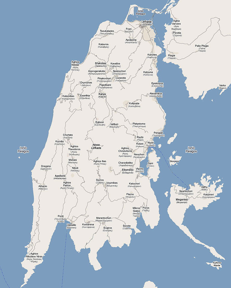 Αναλυτικός Χάρτης της Λευκάδας με όλους του οικισμούς